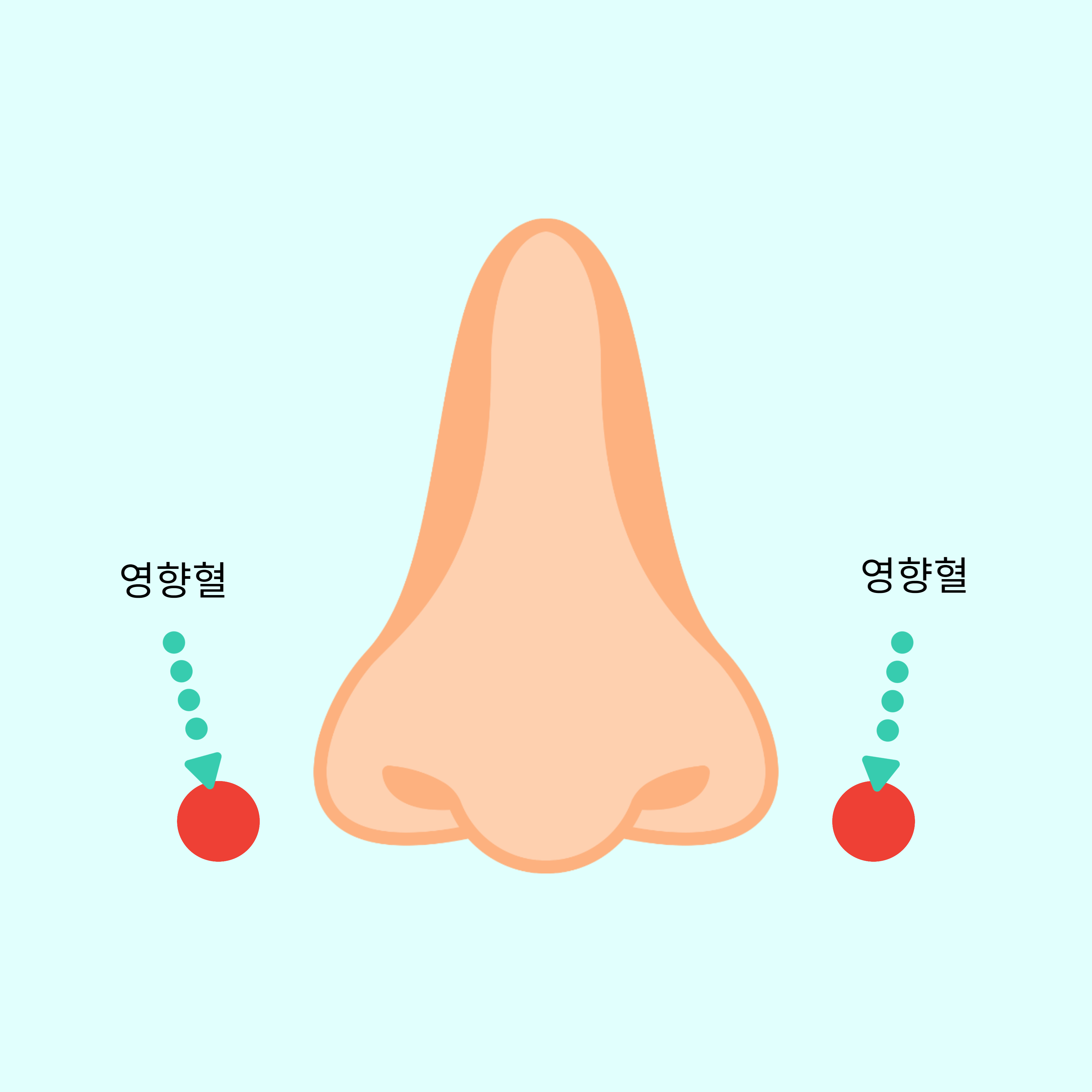 세번째로 후각 기능을 회복시켜서 냄새를 맡을 수 있게 해주는 영향혈을 지압하는 방법입니다. 코 양쪽 끝에서 한 마디 정도 옆쪽에 있는 부분인데, 이 영향혈을 양 검지 손가락으로 지그시 누르며 지압하는 것입니다. 지압은 콧물이 날 경우 수시로 압박하는 것이 좋습니다.
